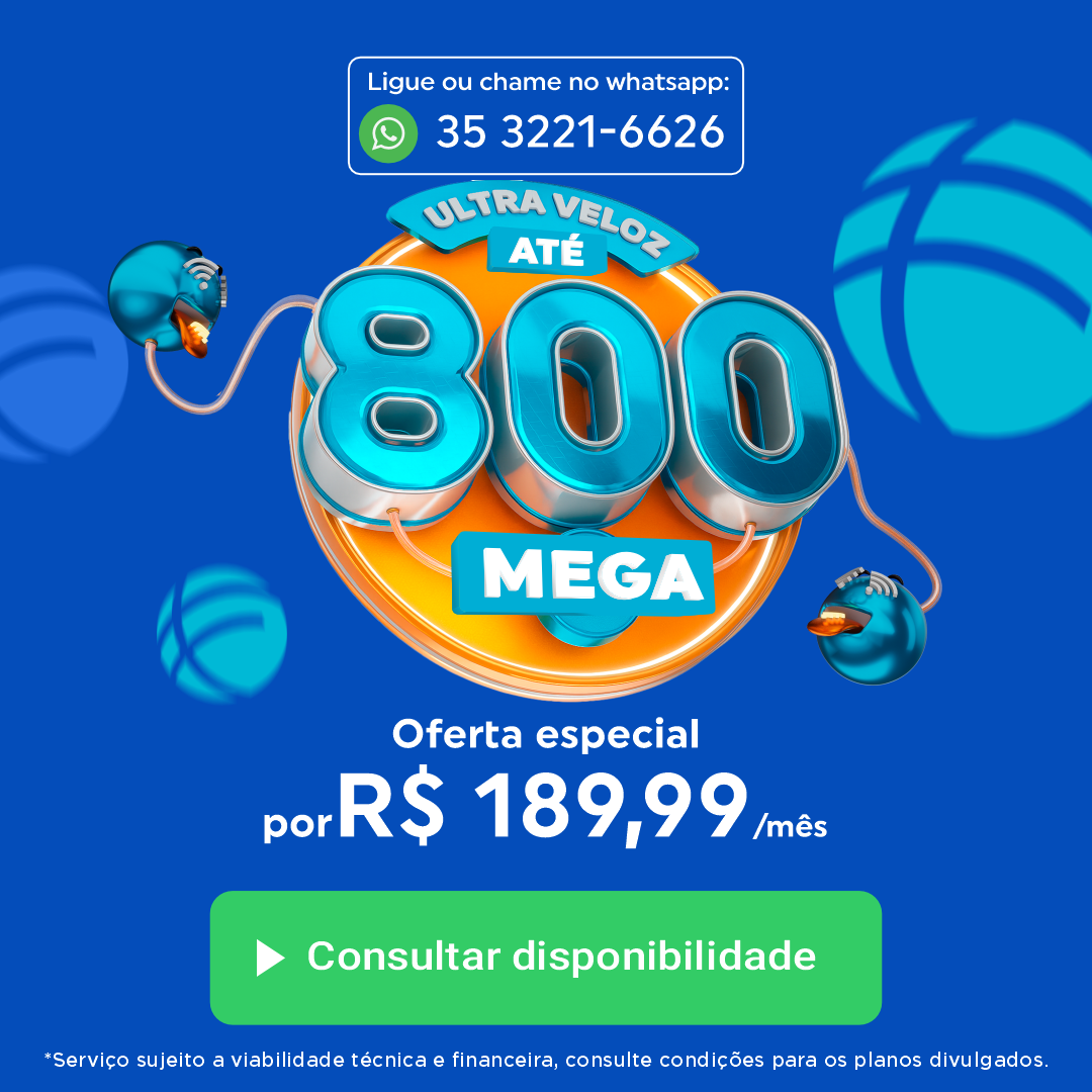 A velocidade instantânea mínima da banda larga é de 40% da velocidade máxima contratada. A velocidade anunciada de acesso e tráfego na internet é a máxima nominal, podendo sofrer variações decorrentes de fatores externos.